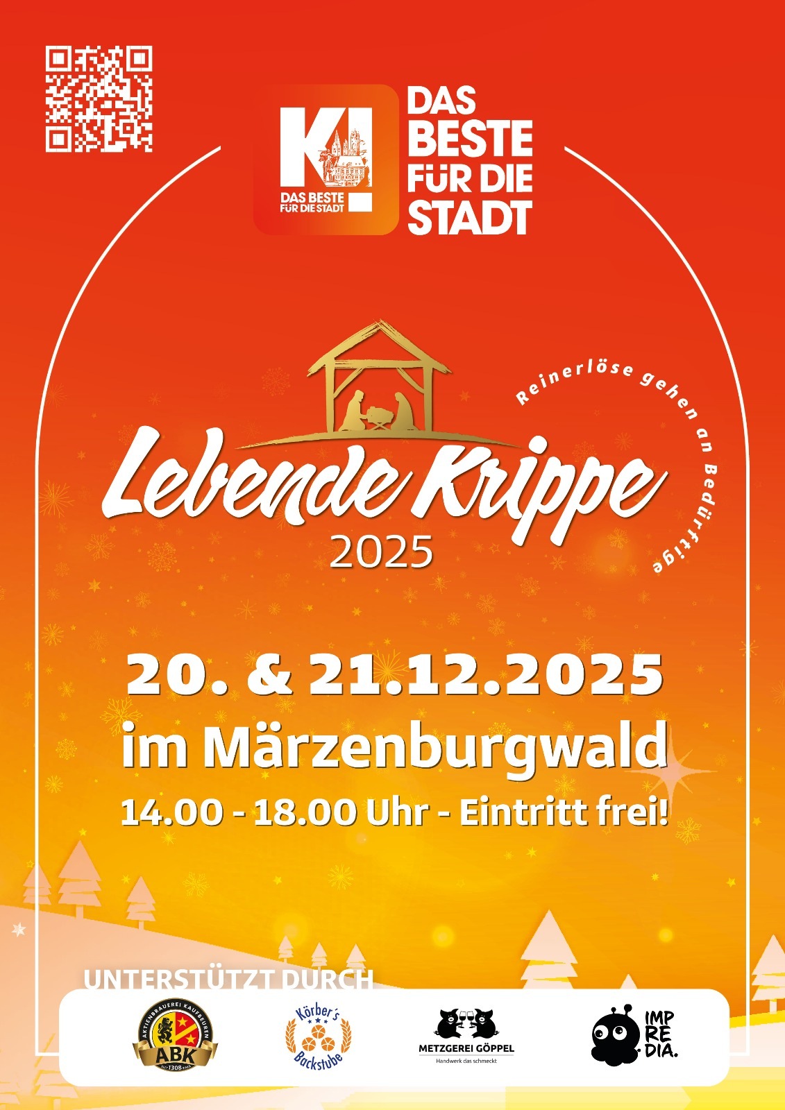 Bereits seit 1991 veranstaltet die Kaufbeurer Initiative e.V. die „Lebende Krippe“ im Märzenburgwald. Etwa 90 Mitglieder der KI sind notwendig, um den alljährlich über 10.000 Besuchern ein besinnliches, vorweihnachtliches Erlebnis zu bereiten. Sei es als Maria und Josef, als Hirte, im Verkaufsstand, beim Spülen, im Kassenhäuschen, im Zuliefererbereich oder bei Aufbauarbeiten von Krippe, Stadel und Schafgatter. Das Schöne ist, dass hier Jung und Alt zusammenarbeiten. Bei manchen Familien sind bereits drei Generationen vertreten. Ein besonderer Dank geht an die Musikgruppen, die nur für eine Brotzeit die Krippe musikalisch umrahmen.